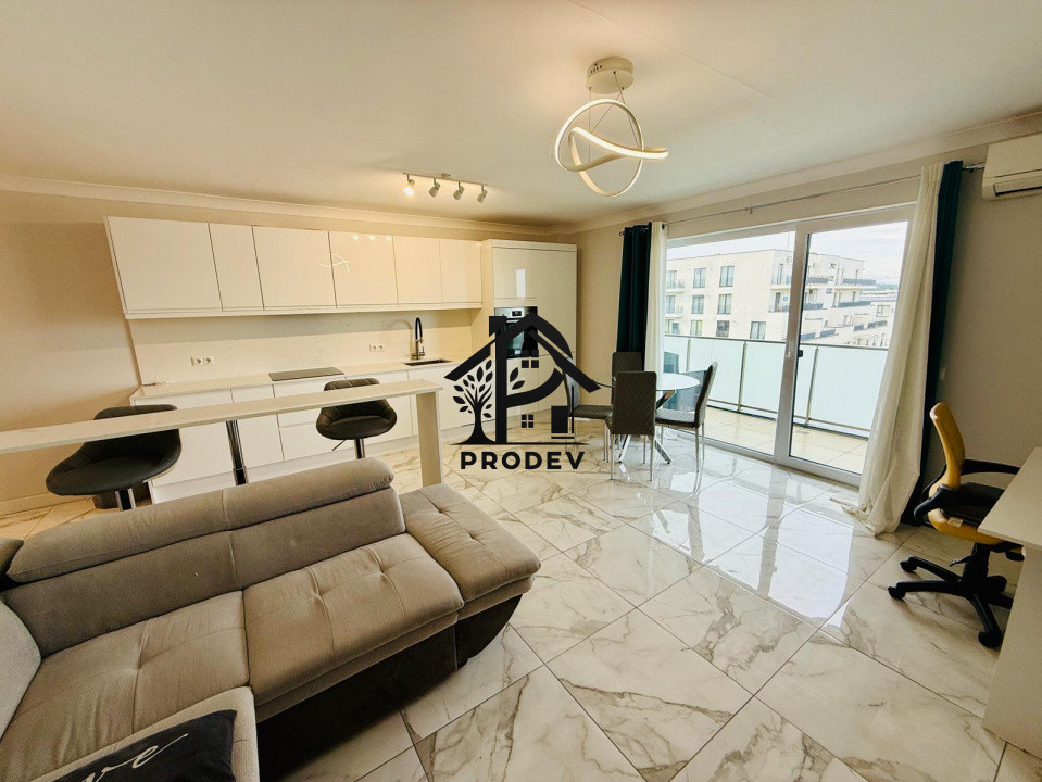 HubX ofera la vanzare apartament modern cu 2 camere, situat in cartierul Europa, pe strada Nicolae Steinhardt. Apartamentul este situat la etajul 7, intr-un imobil cu 7 nivele, finalizat in anul 2021. Suprafata utila este de 58mp, compartimentarea este semidecomandata si se prezinta astfel: hol, dressing, living open-space cu bucataria, dormitor, balcon si baie.